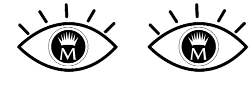 Misencil Eyes sticker featuring stylized eyes with a crown and 'M' logo, playfully winking. Perfect for a chic, expressive touch.