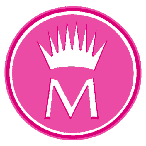 Misencil Lashes brand logo featuring a white crown and stylized 'M' on a vibrant pink circle.
