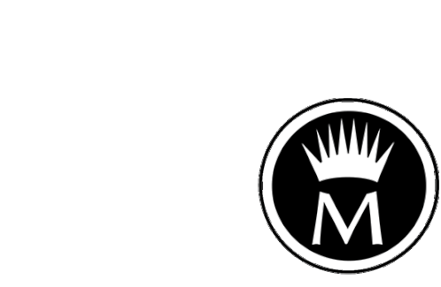 a black and white logo with a crown in the middle of a circle .