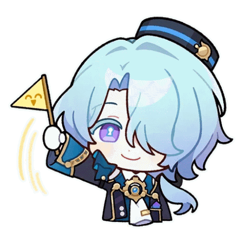 a cartoon character with blue hair is holding a small yellow flag