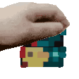 Misha Mishaggawp, a pixel art character, is depicted holding a stack of colorful blocks in this animated sticker.