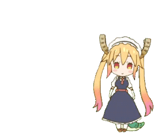 Chibi Tohru from Miss Kobayashi's Dragon Maid dances playfully, wagging her dragon tail in this cute animated sticker.