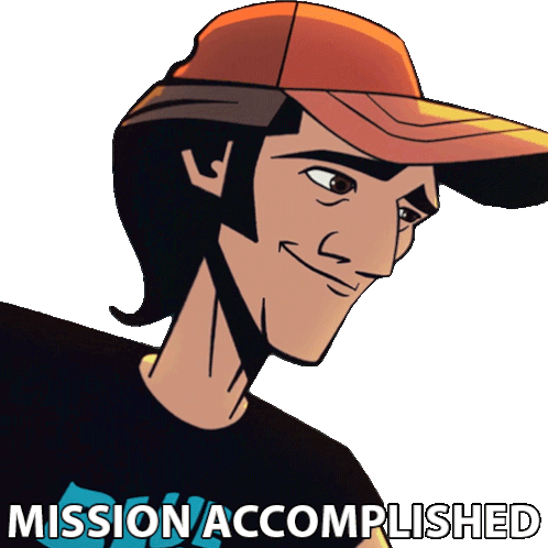 Bobby Ray from Agent Elvis smiles broadly, declaring 'Mission Accomplished' after a successful task.