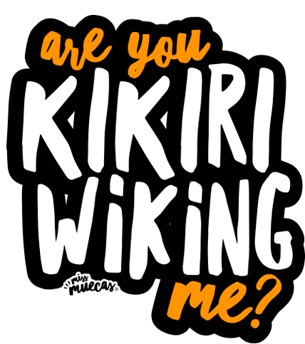 A graphic sticker by Missmuecas featuring the playful phrase 'Are you Kikiri Wiking me?' with a transparent background.