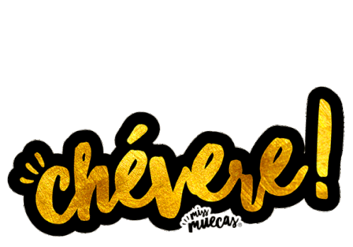 Golden textured 'chévere!' text with 'miss muecas' signature, a vibrant Venezuelan expression.