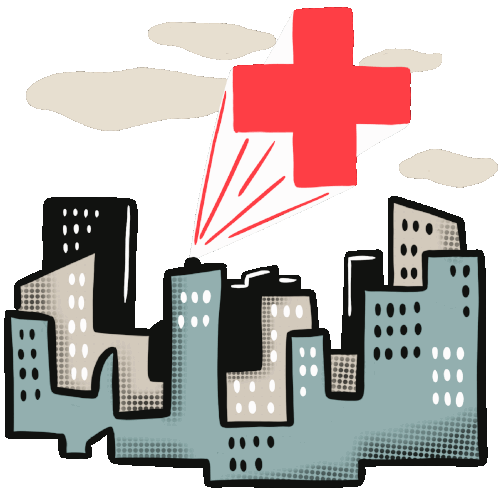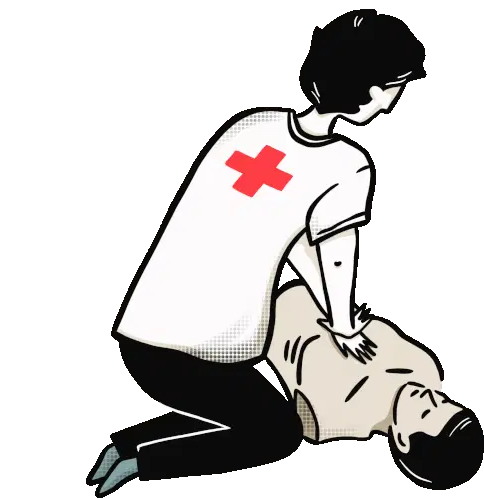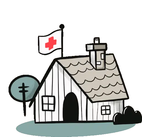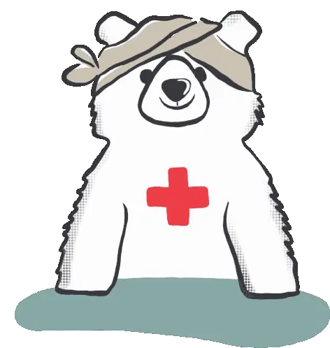 A clear sticker featuring a black bat symbol with a red cross inside, representing first aid and Red Cross Youth.