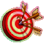 A pixelated animated sticker of a target with two arrows hitting the bullseye, featuring a subtle glow effect.