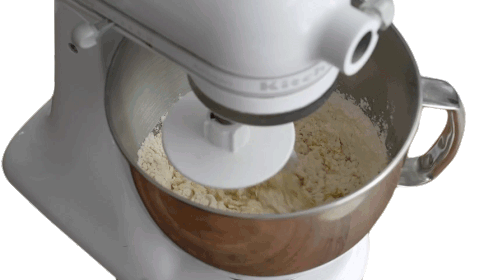 Brian Lagerstrom expertly mixes flour and other ingredients in a stand mixer, preparing for a delicious recipe.