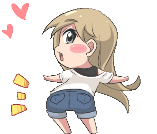 Miya, a cute blonde anime girl, dances playfully with hearts floating around her. Perfect for expressing affection.
