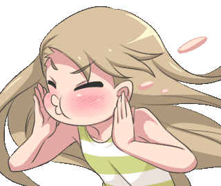 Miya shows an excited, open-mouthed expression, then puffs her cheeks in a cute, embarrassed motorboat action.