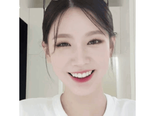Miyeon from (G)I-DLE transitions from a bright smile to a neutral expression, perfect for a reaction sticker.