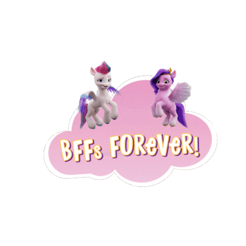 Two adorable Mlp Make Your Mark ponies, a unicorn and a pegasus, float on a pink cloud with "BFFs FOREVeR!" text.