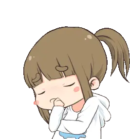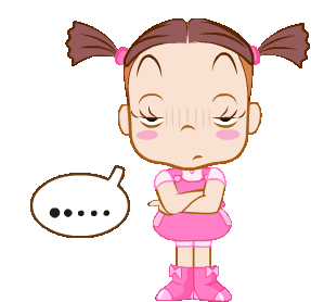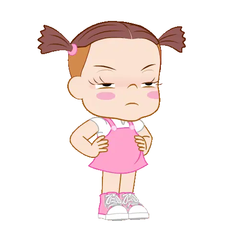 A cute cartoon girl with pigtails, dressed in pink, looks annoyed or bored with a thought bubble.