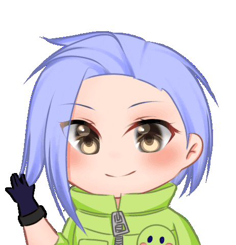 Benedetta from Mobile Legends Bang Bang, a cute anime girl with blue hair, waves and says 'HELLO' with a sweet smile.