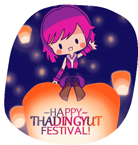 Mobile Legends Bang Bang character Nana celebrates the Happy Thadingyut Festival, sitting on a glowing lantern amidst a sky full of lights.