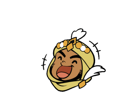 Khaleed from Mobile Legends Bang Bang laughing heartily with a big smile, wearing a yellow turban and gold accessories.