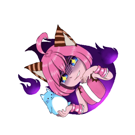 Nana from Mobile Legends: Bang Bang, a pink-haired cat girl, holds her blue cat companion with a mischievous look.