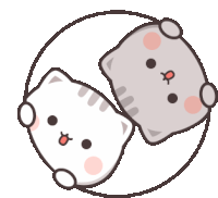 Two adorable Mochi Cats, a white Chibi Cat and a grey one, rotate playfully in a yin-yang symbol.