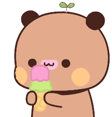 Mochi Peach, the adorable bear-like character, happily enjoys a delicious two-scoop ice cream cone, licking its lips with satisfaction.