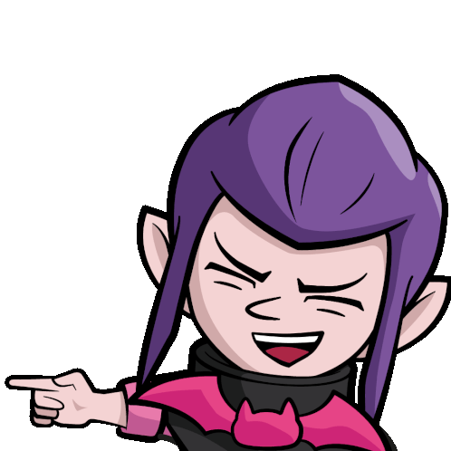 Brawl Stars character Mortis laughs mockingly and points, perfect for funny and insulting reactions.