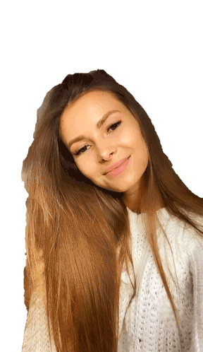 A beautiful Ukrainian model with long brown hair smiles and winks, then poses confidently for a charming Instagram sticker.