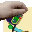 Anime character Yellow from Pokémon in various cheerful poses, celebrating a birthday with a Pikachu.