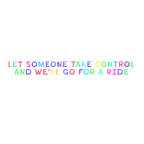 Animated lyric sticker from Morgxn's 'Modern Man': 'LET SOMEONE TAKE CONTROL AND WE'LL GO FOR A RIDE'.
