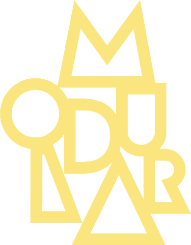 Animated sticker featuring the Modular Festival Augsburg logo, transitioning from orange to blue.
