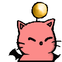 A cute Moogle from Final Fantasy dances happily with a yellow pom-pom on its head, radiating joy.