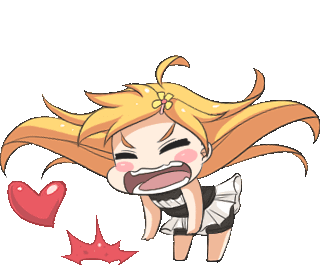 Molly Jinzhan, an anime girl, transitions from an angry, arms-crossed pose to a sad expression while holding a red heart.