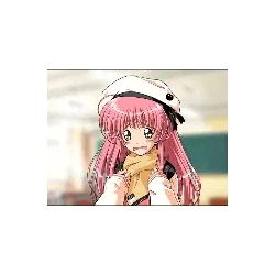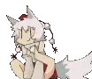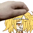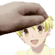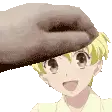 Animated pixel art sticker of Momiji from Fruits Basket, reacting with a cute blush as his head is gently touched.