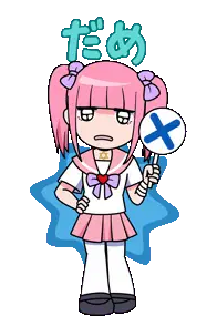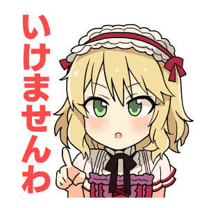 Momoka, an anime girl with blonde hair and green eyes, expresses disapproval with a pointed finger and the phrase "Ikemasen wa."