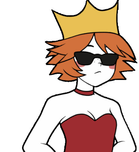 A sassy cartoon queen with a crown and sunglasses points directly at the viewer, displaying a bold and defiant attitude.