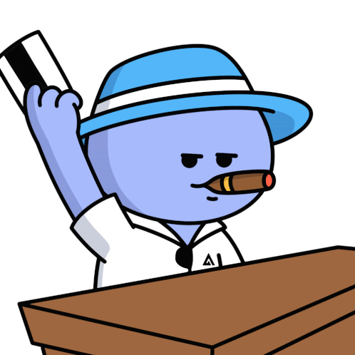 A cartoon man with a cigar and a hat with 'A' on it, ready to buy or sell, representing a money sale.