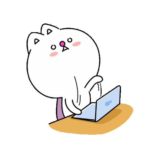 A diligent cartoon cat character is shown typing rapidly on a keyboard while focused on multiple computer monitors.