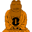 A pixel art sticker of Pepe the Frog depicted as a meditating Buddha, featuring a stylized 'a' symbol on its chest.