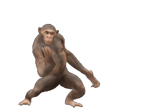 a chimpanzee standing on a white background with its hands outstretched