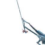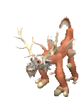 An animated monster beast from Spore, featuring antlers and a skull-like face, shown walking and moving its limbs.