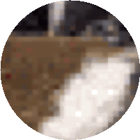 A highly pixelated and blurred circular image featuring abstract color shifts, representing a Monster Truck Unicorn.