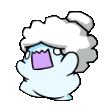Frutti Dino, a fluffy cloud creature with sunglasses, dances energetically, perfect for a party mood.