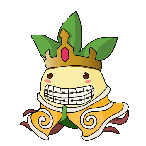 a cartoon character with braces and a crown