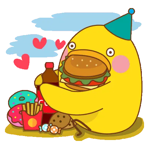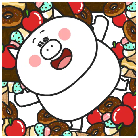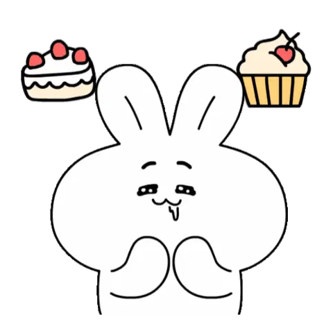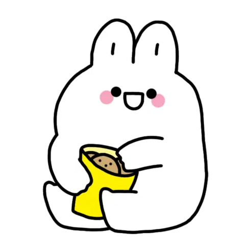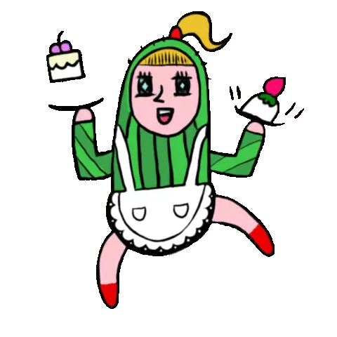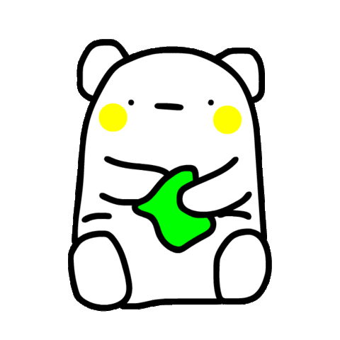 A cute, simple white creature with yellow cheeks holds a bright green, irregularly shaped food item.