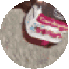 A pixelated clip of the Moon Drop Flex meme, featuring a person's legs and a pink and white sneaker, often associated with Ray Zin.