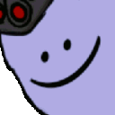 Moon2s, a purple cartoon character, smiles while holding a hammer in its mouth.
