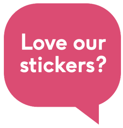 Animated speech bubbles from Moonpig asking users about their satisfaction with stickers, photo uploads, cards, and features.