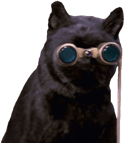 A black 'Moral Compass Cat' wearing binoculars, looking intently. A quirky and unique sticker for guidance.