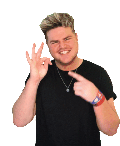 Morgan M James, the singer, smiling broadly and making an 'OK' hand gesture, conveying a positive and cheeky vibe.