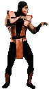 A pixelated Mortal Kombat ninja character cycles through green, orange, and purple colors in a fighting stance.