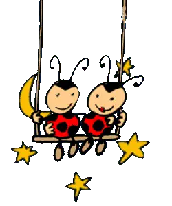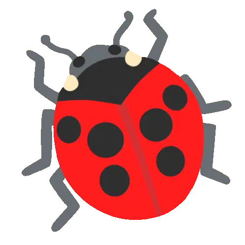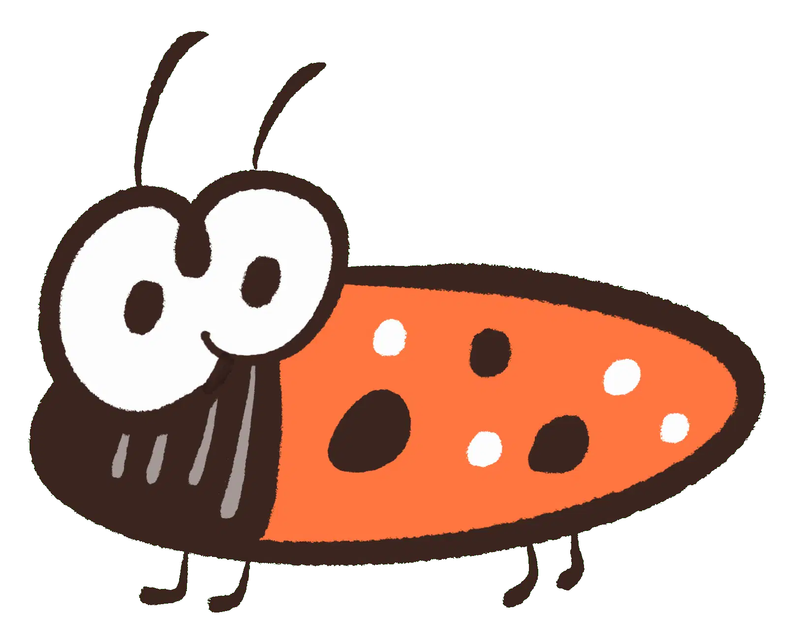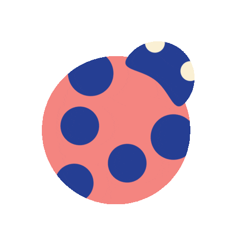 A cute animated ladybug with a red body and blue polka dots, featuring a blue head with white spots, from Mosie Baby.