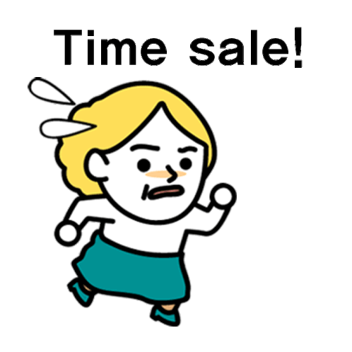 A cartoon mom or woman runs frantically with a worried expression, chasing a 'Time sale!' opportunity.